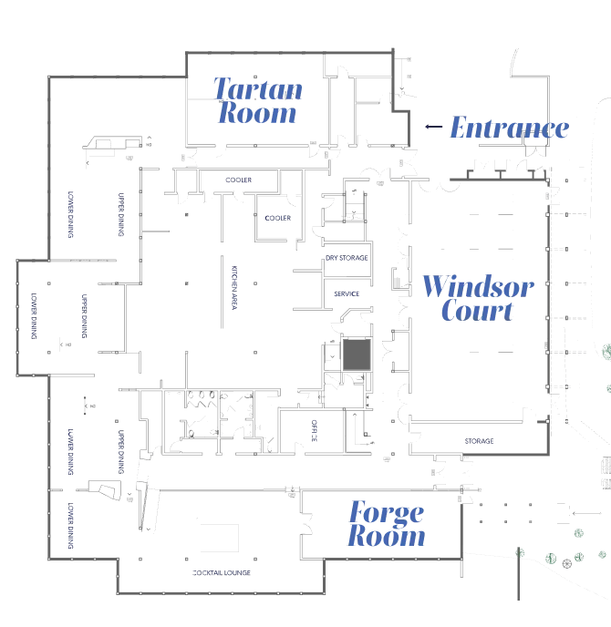 Georgian Ballroom – Located on the second floor, this elegant restaurant space for lease boasts a seating capacity for 500 guests.